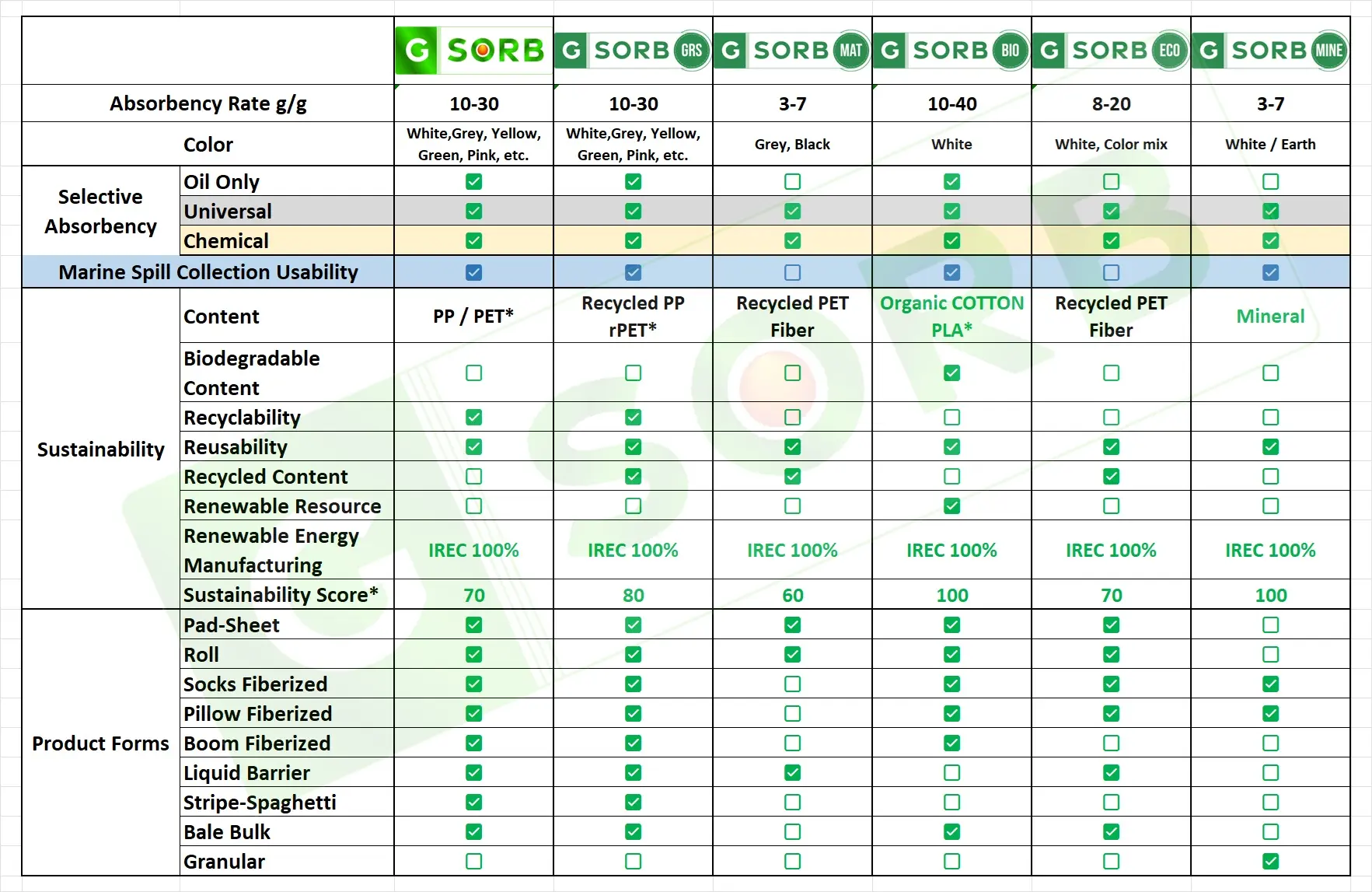 The evolution of G-SORB product portfolio by functionality and Sustainability